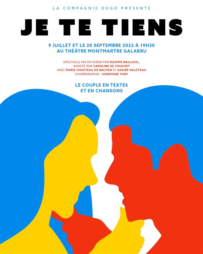 De la rencontre à la séparation, "Je te tiens" rend hommage au couple, et à l'amour. À travers les mots de grands auteurs comme Confino, Ribes, Claudel, Bacri, Jaoui, ce spectacle invite à entrer dans son intimité. Beaucoup de pages sont tournées, peu sont relues.