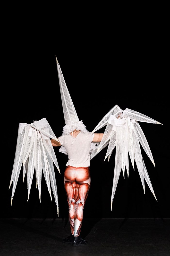 Chorégraphe et performeuse, Christine Armanger s'en saisit pour composer un spectacle solo à la fois grave et euphorique. Au fil des tableaux, elle confronte le spectateur à toute une cohorte de créatures, sorties des visions de Saint Jean, des délires de Jérôme Bosch ou de nos fièvres contemporaines.