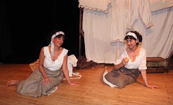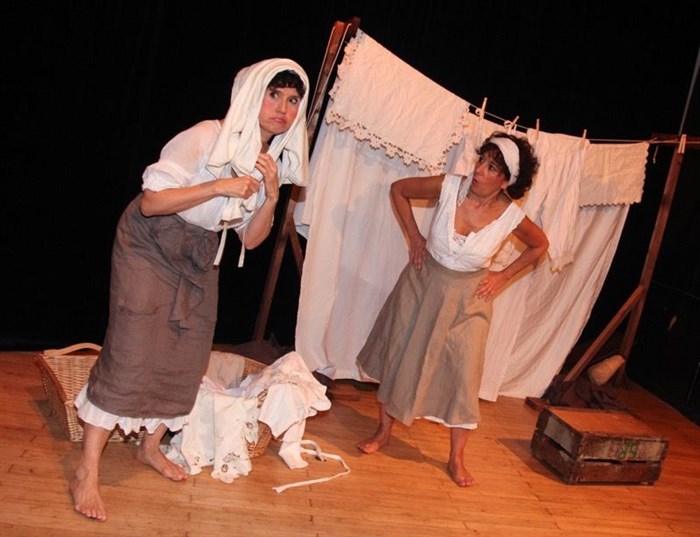 Près d'un lavoir, deux femmes occupées à l'entretien du linge, se distraient de leur labeur en se racontant des histoires coquines, dans une vive et joyeuse alternance de répliques, jouant tour à tour les personnages de leurs récits. Boccace et l'Arioste revisités dans la langue délicieuse de La Fontaine.