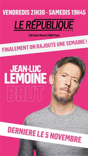 Tu veux savoir ce qu’ont pensé les spectateurs et la presse de cet événement : Jean-Luc Lemoine dans Brut - Le République ? Découvre leurs avis éclairés et prépare-toi à vivre un moment d’exception à ton tour en réservant tes places !