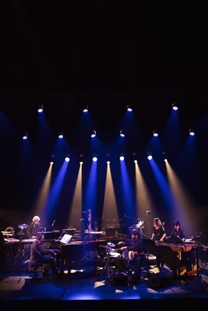 Jean-Marie Machado a réuni sur scène un orchestre composé uniquement de percussions. Tout ce qui se frappe, se frotte, se heurte, se pince, se gratte, se racle est sur la scène. Nous sommes au paradis des percussions. Il y a là : marimbas, des xylophones, glockenspiel, vibraphone, des cymbales (chaque percussionniste en a une ou plusieurs), des cloches (bambous ou coquillage, ou autres), des bols tibétains, et de multiples tambours. Ces percussions rassemblent peau, bois, métal, ce qui donne des mélanges de sons, de timbres, de textures.