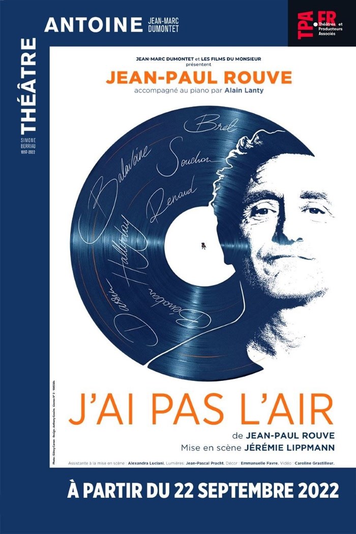 Quel talent ! J'ai redécouvert les paroles de chansons connues que j'écoute sans vraiment entendre les mots! Du grand Jean-Paul Rouve, un vrai talent de conteur. Je n'oublie pas le pianiste qui est aussi un talentueux musicien. Bravo bravo et allez-y c'est un pur moment de partage et de théâtre. Quelle bonne idée M Rouve de nous faire découvrir à nouveau ces chansons connues!! Mille fois merci pour ce partage et votre diction, narration ont fait de moi une spectatrice enjouée, ravie . Un mot MERCI.