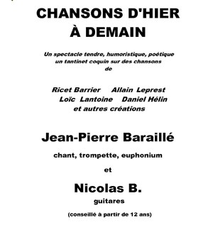 L’événement Jean Pierre Baraillé et Nicolas B | Chansons d'hier à demain de type Chansons Poétiques, organisé ici :