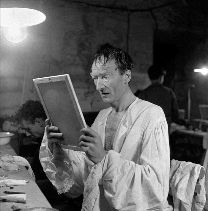 La photo d'Agnès Varda ci-dessus montre Jean Vilar devant un miroir, après une représentation de L'Avare.