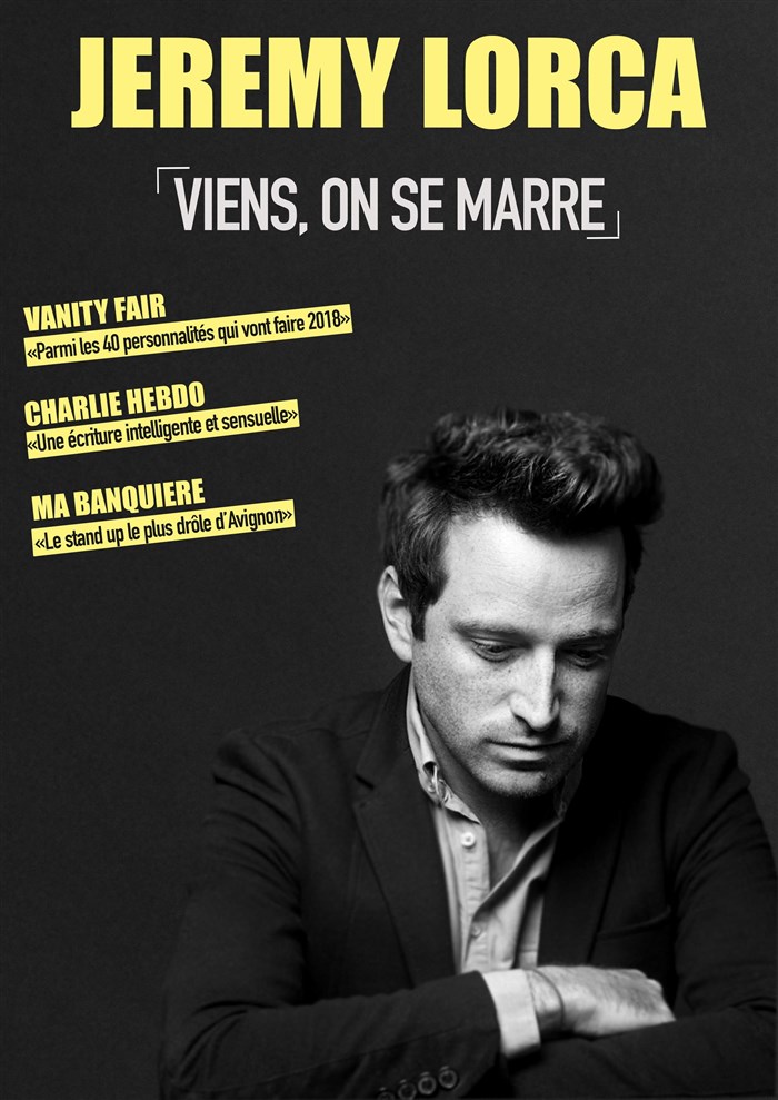 Après avoir joué 3 ans à Paris et en tournée, son one man show "Bon à Marier", Jeremy Lorca, chroniqueur sur Europe 1 dans Samedi Roumanoff et sur France 3, crée à Avignon son deuxième spectacle "Viens on se marre" où il se pose des questions existentielles : Est-ce qu'on peut coucher avec un marchand de kebab quand on est végétarienne ? A partir de quand on brise la chaîne du froid ? Comment réussir à uriner de manière élégante dans un train en marche ? Non, promis, il n'abordera pas ce sujet délicat.
