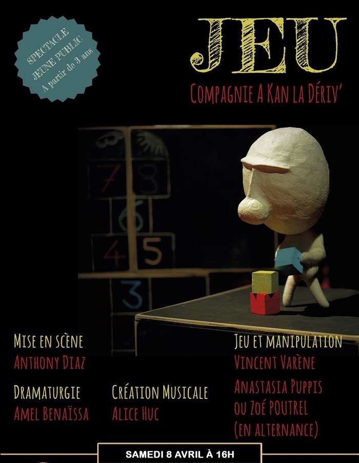 Avec des marionnettes simples et des décors inspirés de la vie quotidienne des enfants, Jeu vous fait voyager dans la journée du petit Basile et l'accompagner dans ses rêveries drôles et tendres à la fois.