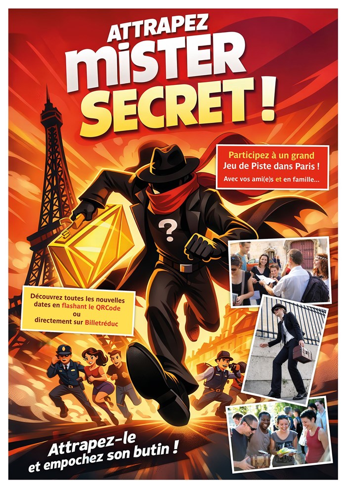 Mister Secret est caché dans Paris, déguisé, avec une mallette contenant son butin ! A vous de le retrouver, de le démasquer et de l'attraper !