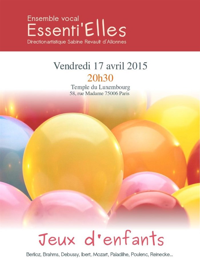 Les Essenti'Elles présentent leur nouveau concert, autour du thème de l'enfance, mêlant légèreté, humour et jeu, de Mozart à la mélodie du bonheur !