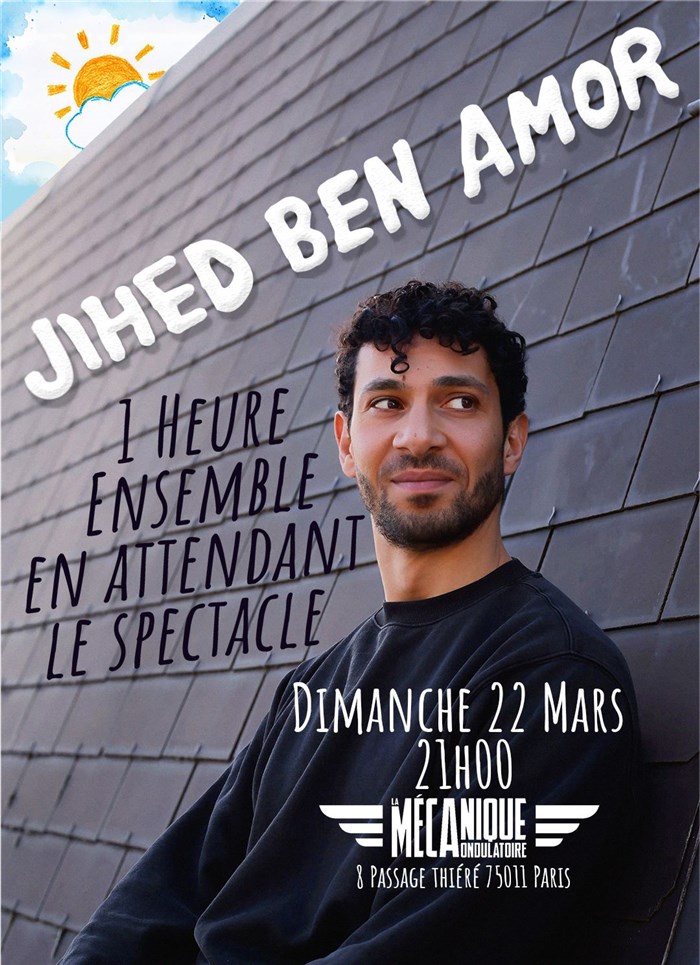 Découvre Jihed Ben Amor dans 1 heure ensemble en attendant le spectacle, qui fait partie de notre sélection d’événements de type Humour et qui se tient ici : La Mécanique Ondulatoire -
