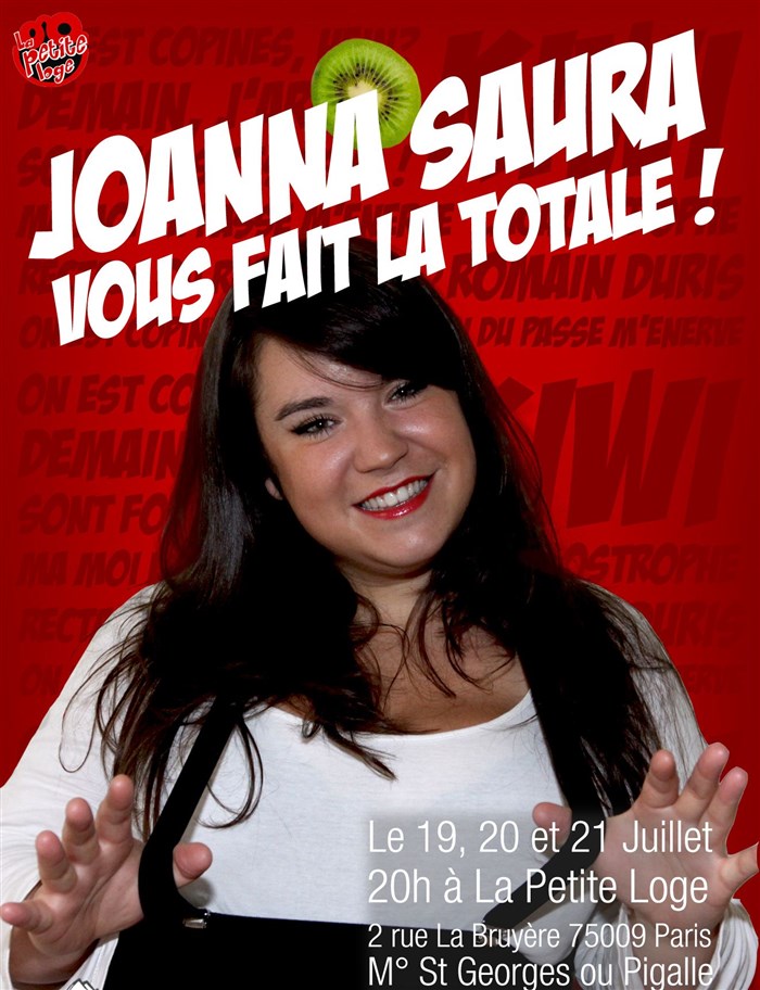 Non seulement elle a du talent, mais en plus elle est DEBORDANTE d' énergie, Joanna vous régale du début à la fin dans une salle très sympa ou la proximité avec L 'artiste permet de vivre plus intensément encore ses sketchs tellement drôles... Que de rebondissement, vraiment Joanna vous fait la Totale, C'est à voir !