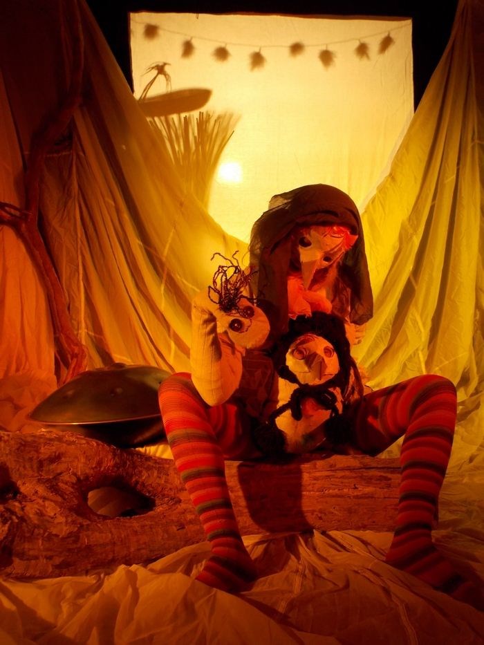 Masques d'oiseaux et marionnettes, Théâtre d'ombres, Conteuse et Fée des Bois : c'est la magie de John Berlu.