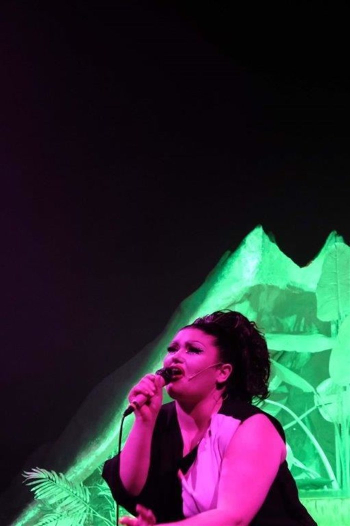 Histoire de sexe, d'argent et de pouvoir sur fond de paillettes, de faux cils et de volcan en carton-pâte : l'extravagant Showgirl de Marlène Saldana et Jonathan Drillet réhabilite pour la scène le film quasi éponyme de Paul Verhoeven.