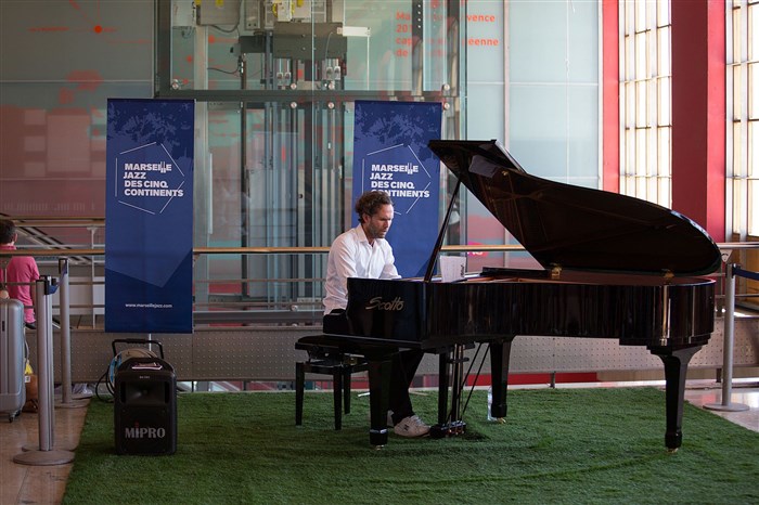 A travers ses compositions et arrangements soignés, il développe un univers qui lui est propre : énergique, sensible, puissant, communicatif. Seul au clavier, il nous offre un voyage surprenant au coeur du jazz, avec une part d'émotion profonde et beaucoup d'humour.