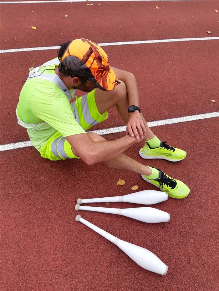 La scène est une rencontre. L'un défend une critique du modèle olympique et du corps sportif comme paradigme du corps occidental, fonctionnel, scientiste, en termes de centimètres, de grammes et de secondes. L'autre se fait mal depuis l'enfance à travers la course à pied et le jonglage, mais rêve sans l'avouer de participer à la cérémonie d'ouverture des JOP de Paris. Entre corps sportif et corps poétique, quelle perspective ? Enfermés ensemble dans un espace-temps circonscrit, sortiront-ils de leur dispute sans égratignure ?