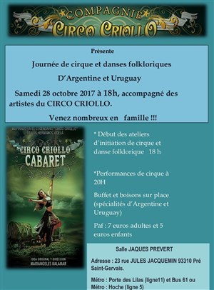 "La Compagnie Circo Criollo vous invite à venir découvrir en famille le cirque et danses folkloriques de l'Argentine et Uruguay"