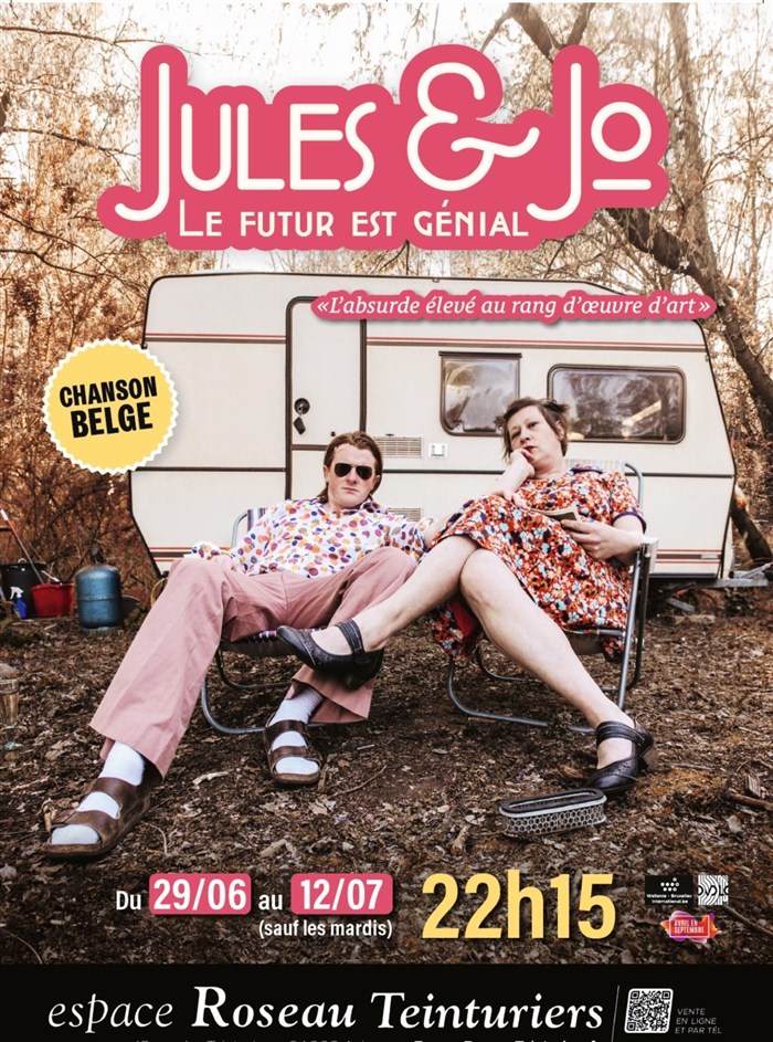 À l'occasion de la sortie de son nouvel album, le duo belge Jules & Jo revient à Avignon présenter son show absurde et cinglé ! Un spectacle musical hors-format, mêlant machines électroniques & machins acoustiques, poésie surréaliste et grâce cosmique ; un "délire à la sauce belge", jonglant avec nos névroses et riant de nos avenirs incertains.