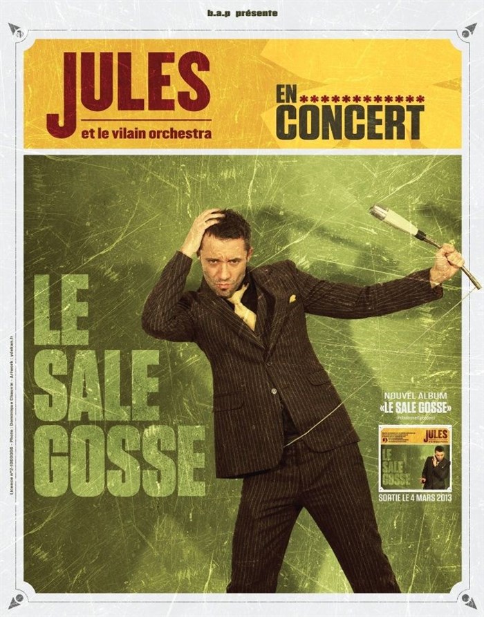 Le one man song d'hier devient le big band d'aujourd'hui ! Pour sûr, JULES ne manque pas d'humour : véritable showman, alliant l'énergie du rock à des phrasés caressants, ce puncheur a de la gouaille à revendre, une écriture sans fioriture, et ce qu'il faut d'autodérision. Jubilatoire !