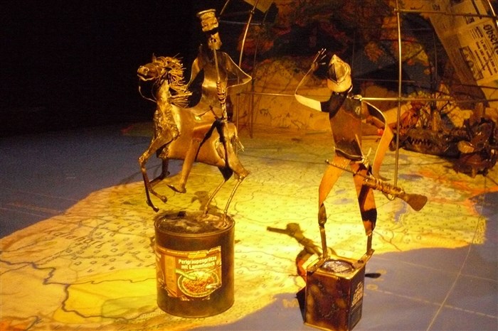 S'emparer de ses romans de Jules Verne écrits entre 1860 et 1900, c'est témoigner des grands progrès de la science et de la technique, de la fin de l'esclavage, des grandes invasions de l'Afrique par les Européens. En prenant le point de vue du Porteur, le griot Hubert Mahela écrit la version de l'antilope et l'oppose à la version du chasseur. Loin de l'imagerie d'Épinal, ce travail à cinq voix, voudrait offrir aux yeux et aux oreilles, une sculpture contemporaine du continent africain.
