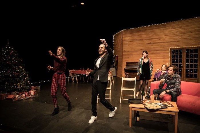 Le réveillon de Noël, les deux parents, la Grand-Mère et les trois enfants. Entre la cuisine et le sapin, c'est le grand déballage : un apéritif qui ne prend pas, des conversations fanées par l'ennui, le traditionnel repas toujours repousse, mais tout doit bien se passer, tout le monde se doit d'être heureux et de trouver un consensus le temps de cette fête. La même soirée se raconte du point de vue du salon puis de la cuisine : deux plans de narration et de vérité. Un appel à la dispute, au règlement de comptes, à la dinde qui vole et aux portes qui claquent...