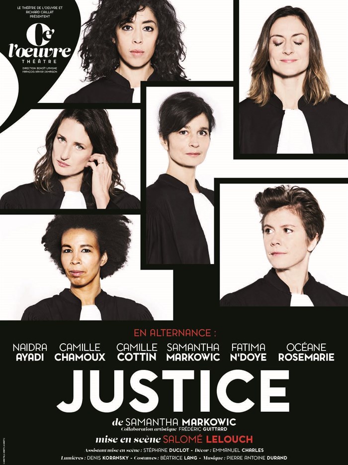 Porté par une distribution exclusivement féminine avec en alternance Camille Cottin, Camille Chamoux, Océane RoseMarie, Naidra Ayadi, Fatima N'Doye, et Samantha Markowic, Justice dresse un portrait sans concession de notre société. Un spectacle coup de poing et rempli d'humanité...