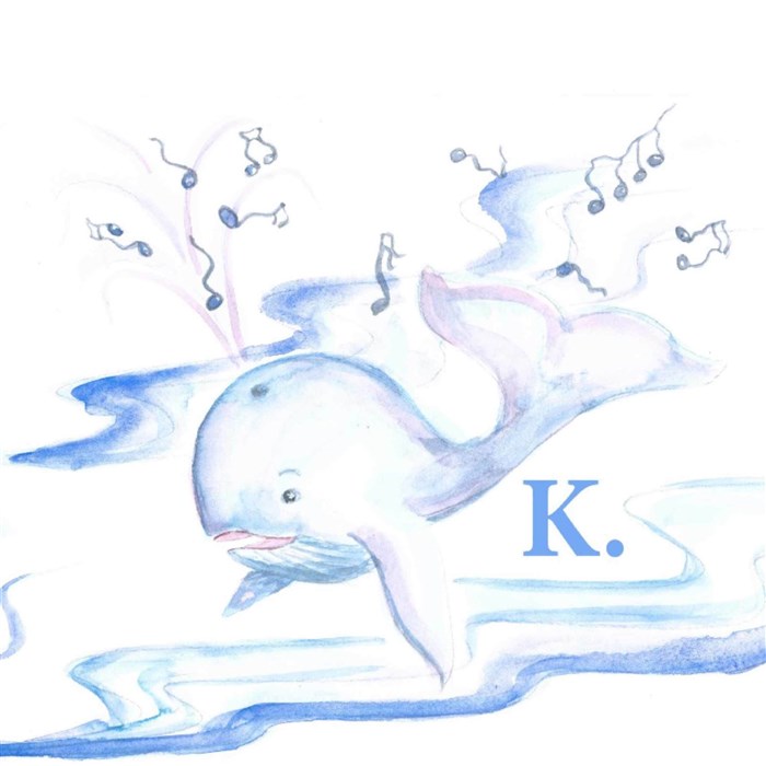 K. est une jeune baleine. Elle adore manger du Krill dans les eaux froides, des crevettes délicieuses. Ce qu'elle aime par dessus tout, c'est chanter, mais elle chante mal !