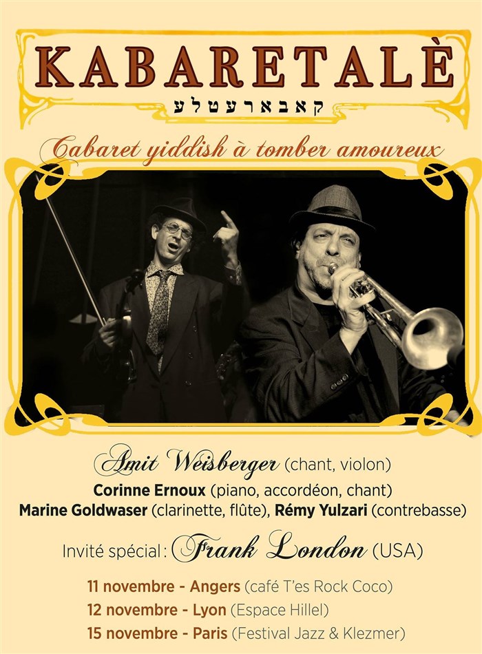 Des chansons yiddish nostalgiques et chansons avec paroles originales, actuelles, qui font rire mais aussi réfléchir par Kabaretalé et Frank London.