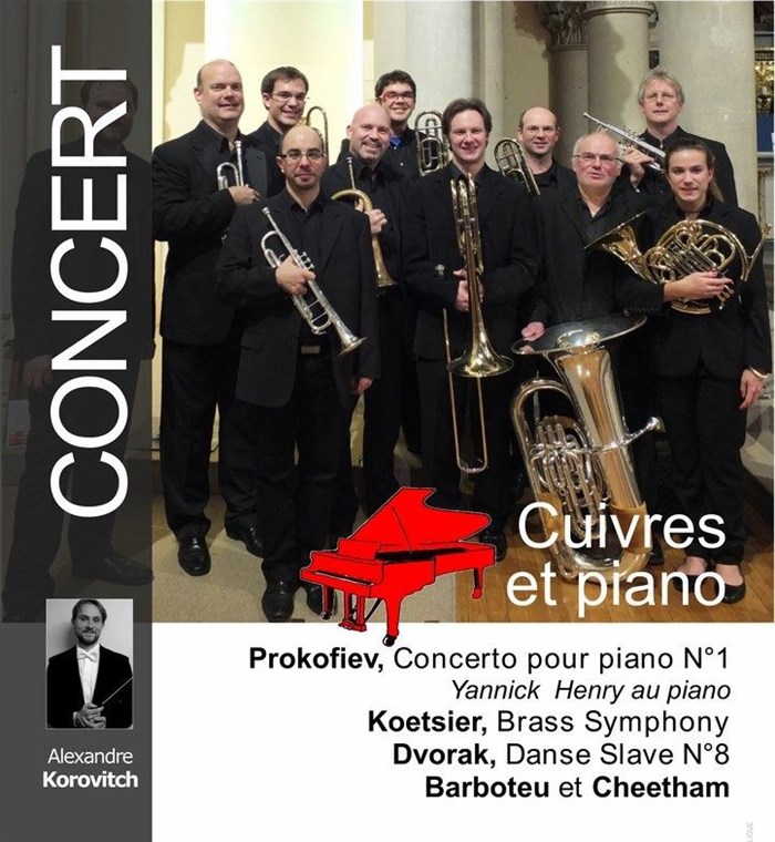 Le Concert N°1 de Prokofiev (1891 - 1953), oeuvre de jeunesse du musicien, a été écrit durant ses études et lui permis de gagner le concours Rubinstein. L'oeuvre est adaptée ici à la formation de cuivres avec piano. Si Jan Koetsier (1911-2006) a étudié le piano et la direction d'orchestre lui, a surtout écrit pour les cuivres. Ses compositions combinent une invention mélodique avec une articulation rythmique solide et des références au jazz. Les Danses Slaves de Dvorak (1841 – 1904) permettent au compositeur de montrer ici sa passion pour les musiques populaires de son pays. L'oeuvre est ici aussi adaptée pour formation de cuivres. Chansonnerie (vieilles chansons du folklore français) de Barboteu (1924 – 2006) et le Scherzo de Cheetham (1936) seront jouées en formation quintette.