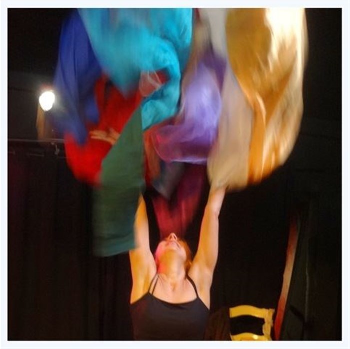 Un personnage légèrement décalé, danseuse sensible et fantasque, découvre dans son sommeil une multitude de tissus colorés. Elle les assemble, les noue, la voilà transformée!