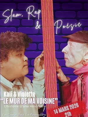 Découvre Kali & Violette : Le mur de ma voisine", qui fait partie de notre sélection d’événements de type Rap / R'n'b / Slam /Hip hop et qui se tient ici : Café culturel Les cigales dans la fourmilière -
