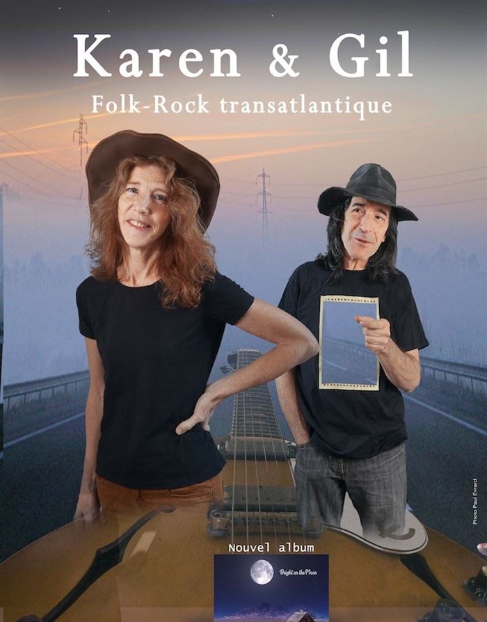 C'est Karen & Gil qui naviguent en finesse entre country, folk, rock et blues en régalant les fans de poésie, de chansons rythmées et de balades mélodieuses. Un voyage transatlantique à travers compositions originales et hommages à Simon & Garfunkel, The Beatles et Crosby, Stills & Nash mais aussi Brel et Bourvil.