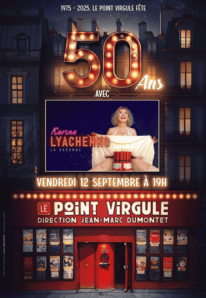 Pour les 50 ans du Point Virgule, Karine Lyachenko vous offre une représentation exceptionnelle de son spectacle culte et explosif créé en 2007, mis en scène par Michèle Bernier !