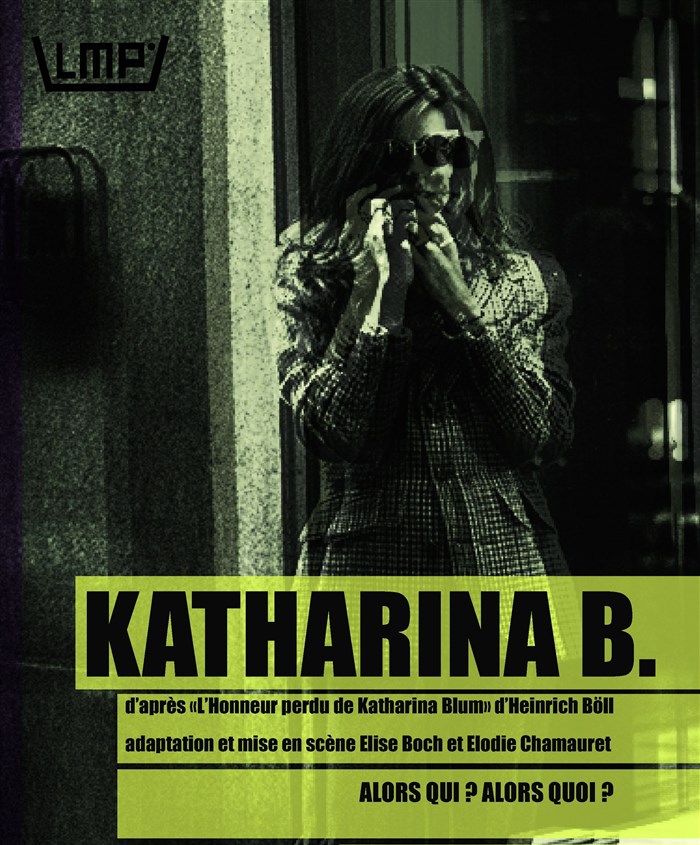 D'après L'Honneur perdu de Katharina Blum d'Heinrich Böll. Katharina B. est un récit-concert pour une comédienne, une batteuse et un bassiste.