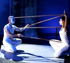 L'écriture est une séquence de mutations, de formes instables ; le va et vient permanent des interprètes crée une cadence et leur présence se fait rythme, pulsation incessante d'un mouvement vital aux accents rituels. De tableau en tableau, les danseurs agissent dans un territoire réduit. Les corps, suspendus, flottent au milieu des spectateurs, s'emmêlent, se libèrent, se métamorphosent, comme formes transitoires et dansantes.