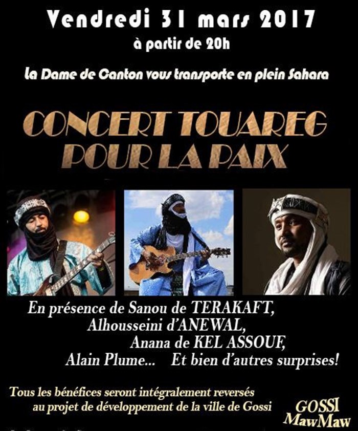 Ce concert touareg, a pour objectif de sensibiliser le public au concept de Gossi MawMaw.