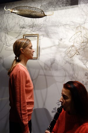 Corine Miret, voix, Isabelle Duthoit, clarinette, Johnny Lebigot, scénographie.