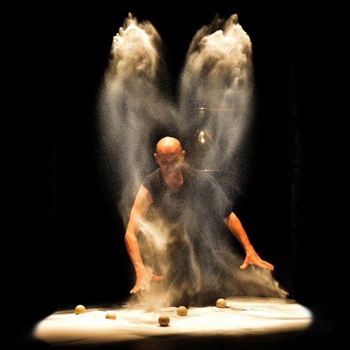Une clepsydre se déversera lentement dans un réceptacle trop petit, l'eau évacuée sera récupérée par un système d'irrigation jusqu'à un grand réservoir. Manipulées par le jongleur, des balles de cristal dansent autour du puits et déclenche des mécanismes, l'eau est revenue dans le village, une vieille bassine pousse sa complainte.