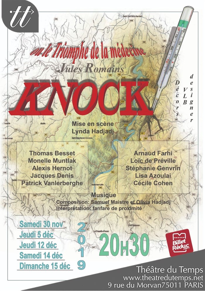 Ce beau texte des années 20 décrit le sujet éternel de la manipulation des hommes par une sorte de gourou qui leur dit ce qu'ils redoutent/ont envie d entendre. Au moins on leur dit quelque chose, on s'intéresse à eux. Même s'ils perdent un peu/beaucoup d'argent, et si leur vie jadis tranquille devient désormais angoissante après leur rencontre avec le docteur Knock ils y trouvent un sens. Linda hadjadj nous en livre une vision vivante et respectueuse qu'elle situe délibérément dans les années 30 qui nous permet d apprécier pleinement la beauté du texte et la psychologie des personnages. le Knock subtil mais inquiétant de Thomas Besset n'a pas à rougir de la comparaison avec les monstres sacrés qui ont incarné ce personnage et nous fait volontiers oublié le dernier avatar cinématographique. Il est superbement entouré par une troupe de comédiens hauts en couleur à l instar de ceux des années 30 pouvant " tout donner " dans des scènettes de quelques minutes. Ce petit monde évolue dans un décor astucieusement conçu qui se transforme rapidement de scène en scène sans casser le rythme enlevé. Le seul regret, c est que toutes les représentations sont complètes, espérons que ce beau spectacle se redonne en 2020.