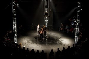 Dans une ambiance qui peut rappeler celle du film Brazil de Terry Gilliam, un gymnaste/acrobate rêveur et deux clowns sinistres rejouent une sorte de crucifixion inachevée. Le spectacle est d'une poésie froide et joue parfois avec nos bas instincts - il faut se retenir de rire. L'outil très particulier de l'acrobate (une sorte de barre fixe en forme de spirale instable), les trouvailles visuelles et sensorielles et la folie douce qui s'échappe du spectacle valent nettement le déplacement, même si les enchaînements et le dénouement laissent un goût d'inachevé.