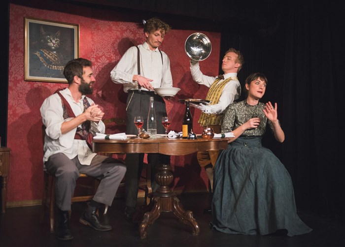 La mise en scène de Justine VULTAGGIO propose une série de pose et de tableau d'une beauté théâtrale. Le Vaudeville rebondit à mesure que les personnages s'enivrent, révélant des pépites de comédiens.