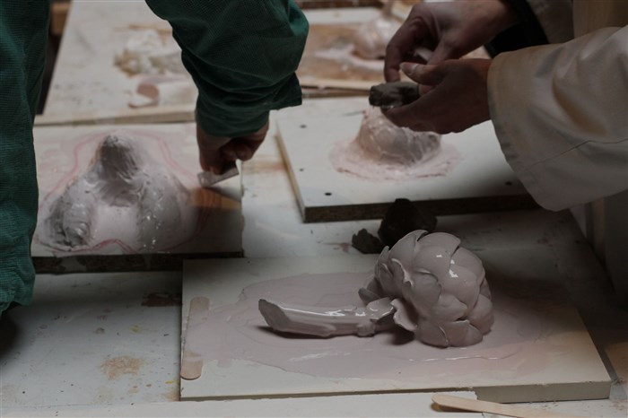 Objectif pédagogiques : Apprendre les principes fondamentaux du moulage par l'expérimentation de plusieurs techniques et matériaux de moulage (plâtre, silicone et alginate), et de tirage (latex, mousses, résine).