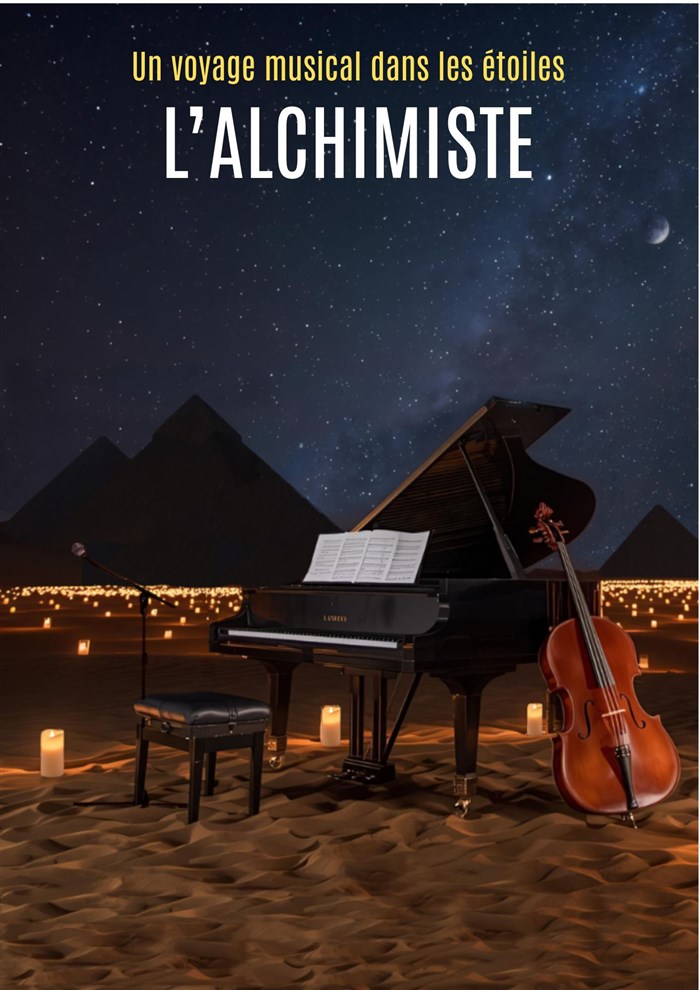 Une pianiste, un chanteur, une lectrice et un violoncelliste proposent un concert intimiste, éclairé à la bougie et sous une voute étoilée, autour du roman mondialement connu L'Alchimiste de Paulo Coelho.