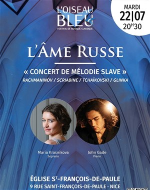 La musique salve, vocale par son essence – que ce soit la mélodie, un morceau pour un instrument solo ou un oeuvre pour un orchestre. La poésie et la musique s'entremêlent en amenant le spectateur au plus loin du sublime. Le programme l'âme russe va présenter la richesse inouïe des mélodies de Rachmininov, Glinka, Tchaikovsky et Sviridov complétée par les oeuvres de piano de Chopin, Scriabin et Rachmaninov