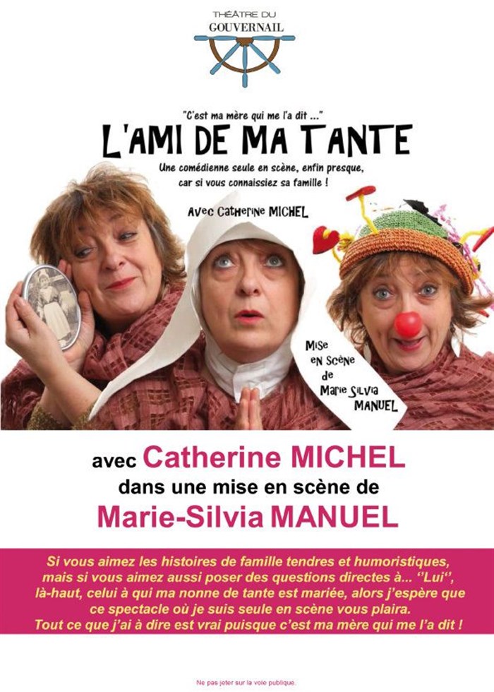 Si vous aimez les histoires de famille, tendres et humoristiques et si vous aimez poser des questions directes à " lui " celui avec qui ma nonne de tante est mariée, alors ce spectacle est pour vous ! Tout ce que j'ai à dire est vrai...puisque c'est ma mère qui le l'a dit !