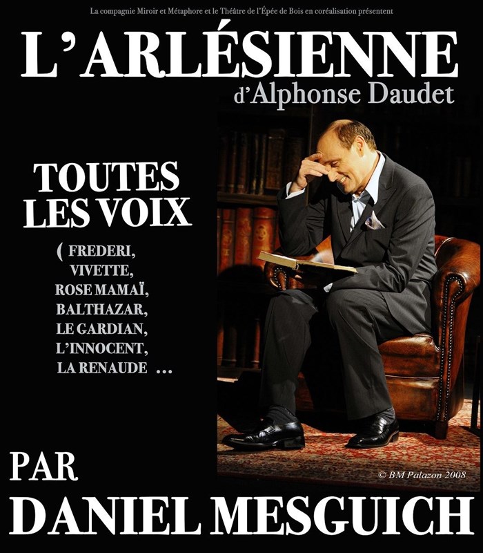 "Daniel Mesguich lit pour nous la pièce en donnant une voix à chacun des personnages (le vieux berger, Balthazar ; le jeune héros, Frederi ; Rose, la mère de Frederi ; mais aussi la timide Vivette ; le frère de Frederi, qui n'est autre que le très clairvoyant idiot du village ; etc.), en prenant également un accent provençal qu'on jurerait vrai. Rien n'est affecté ni grotesque. Là où un mauvais acteur s'égarerait dans une espèce de parodie, il s'agit, au contraire, d'un numéro de comédien d'une virtuosité confondante, ou plutôt, d'une multiple incarnation qui donne une vérité poignante au texte de Daudet. Le fait que Mesguich, en outre, lise les didascalies donne à cette lecture habitée une espèce de réalité vertigineuse."