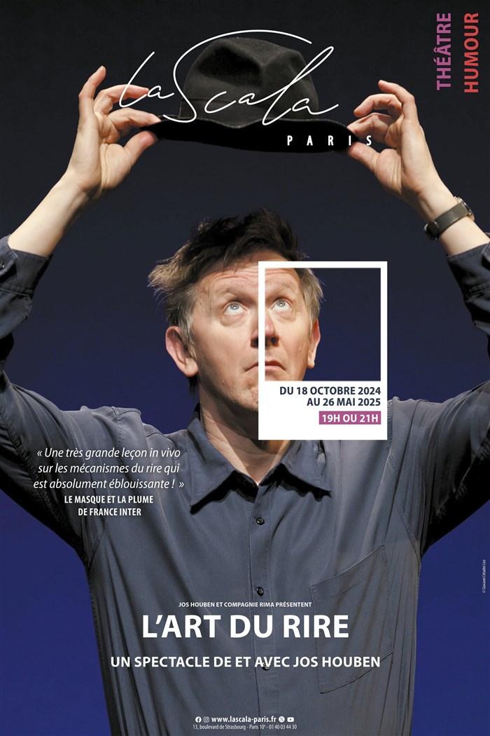 Seul en scène, Jos Houben anime une master class d'un genre particulier, entre philosophie et anthropologie. Il y dissèque les mécanismes du rire, en analyse leurs causes et leurs effets. Rien ne résiste à la perspicacité de son exposé : nos mimiques, nos gestes, nos comportements recèlent un potentiel comique que son oeil expert et son art, immense, de comédien savent retranscrire sur scène en révélant leur caractère saugrenu et burlesque.
