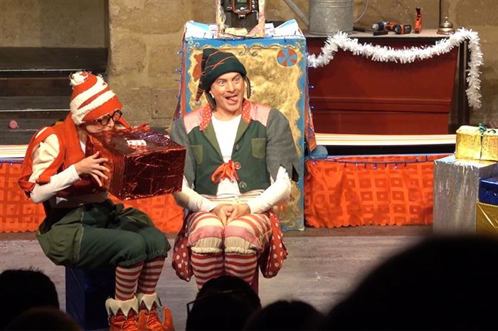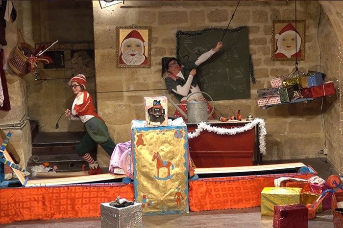 Entrons dans l'atelier du Père Noël où deux lutins ludiques et clownesques peinent à finir d'emballer les cadeaux. Ils s'amusent avec les jouets, les cassent, trébuchent dans les papiers cadeaux...