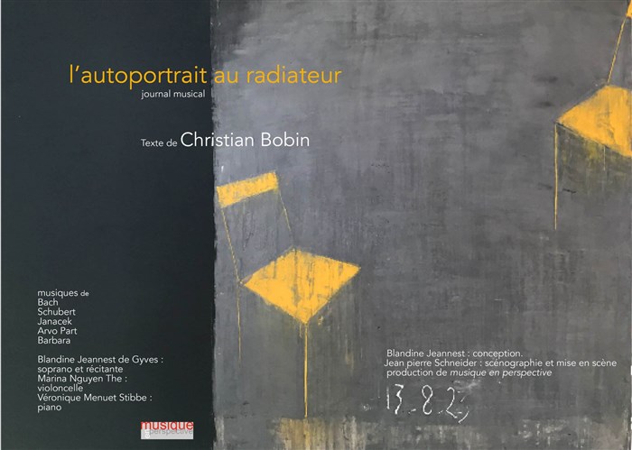 Blandine Jeannest poursuit son travail de mise en perspective de grands textes poétiques par la musique. L'autoportrait au radiateur est pour elle "une indispensable invitation à se ressourcer dans les objets et les lumières du quotidien. Une sorte d'antidote aux catastrophes réelles de notre monde mais aussi aux angoisses intimes qui nous encombrent et nous empêchent de vivre une vie pleine et libre".