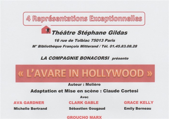 L’événement L'Avare in Hollywood de type Autres pieces, organisé ici :