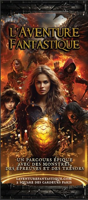 L'Aventure Fantastique est un parcours avec des créatures, des épreuves, des épées en mousse et des trésors, sur les 600 m² d'un théâtre parisien aux décors fantastiques.