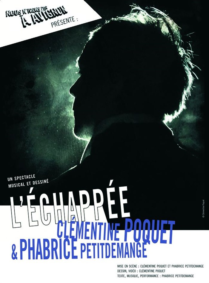 L'Échappée est un spectacle musical et dessiné qui interroge sur les limites du dessin et de l'espace scénique à travers les techniques de vidéo et de dessin d'animation.